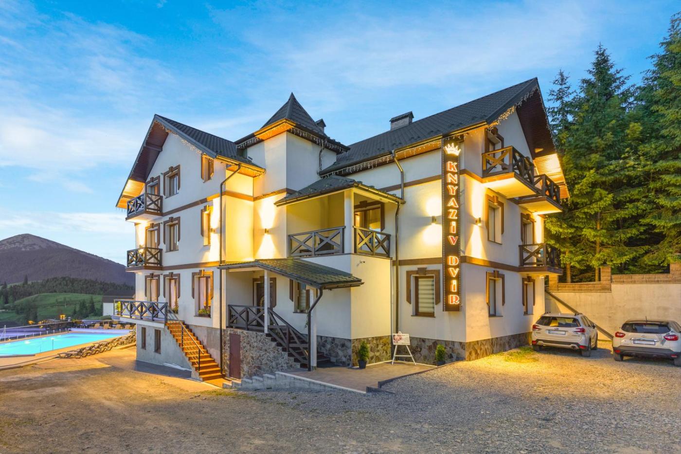 Situated in Bukovel, 31 km from Waterfall Probiy, Князів Двір features accommodation with a seasonal outdoor swimming pool, free private parking, a shared lounge and a terrace. 32 km from Museum of Ethnography and Ecology of the Carpathians and 33 km from Elephant Rock, the property offers a restaurant and a bar. The accommodation provides a 24-hour front desk, airport transfers, room service and free WiFi.