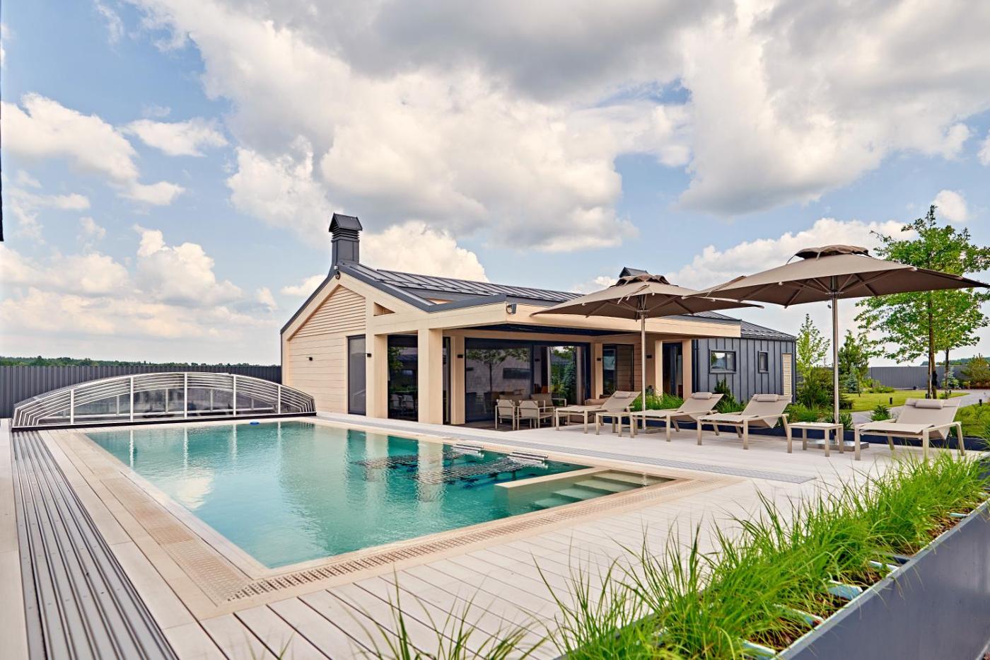 Villa with Private Pool. This luxurious villa has a private pool, a sauna and a fireplace. This spacious villa comes with 1 living room, 6 separate bedrooms and 6 bathrooms with a walk-in shower and free toiletries. Guests will find a stovetop, a refrigerator, kitchenware and an oven in the well-equipped kitchen. The villa also includes a barbecue. The air-conditioned villa features a flat-screen TV with cable channels, a private entrance, soundproof walls, a minibar as well as lake views. The unit has 6 beds. ;