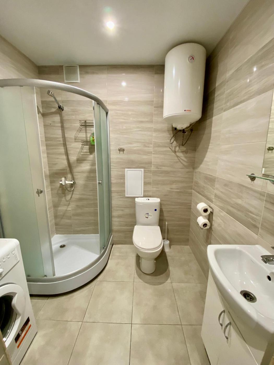 One-Bedroom Apartment. The apartment has 1 bedroom and 1 bathroom with a shower and free toiletries. Meals can be prepared in the well-fitted kitchenette, which is fitted with a stovetop, a refrigerator, kitchenware and a microwave. The apartment offers a washing machine, a dining area, a wardrobe, a flat-screen TV, as well as a quiet street view. The unit has 1 bed.