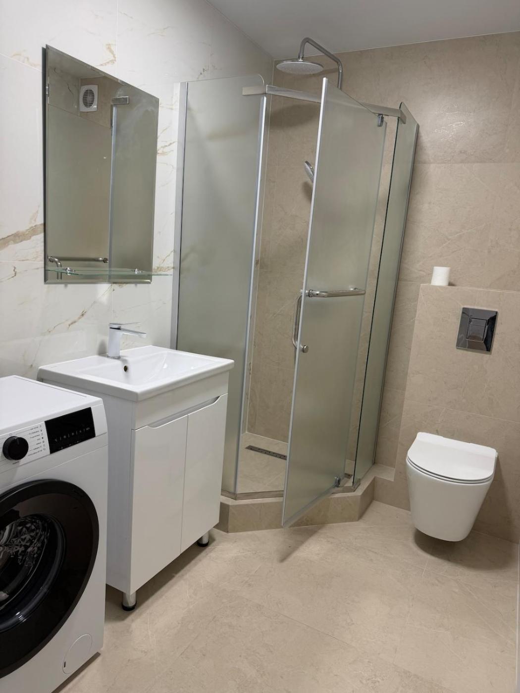 One-Bedroom Apartment. The apartments kitchen is available for cooking and storing food. The apartment offers air conditioning, a washing machine, heating, as well as a balcony. The unit has 1 bed.